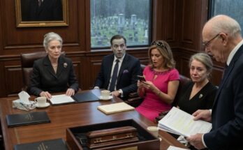 “At the funeral, the room was filled with grief, whispered prayers, and quiet goodbyes. But just as we prepared to say our final farewell, a voice cut through the silence: ‘This shouldn’t be happening.’ All eyes turned. The stranger walked toward the coffin, his expression unreadable… and when he spoke again, the truth he exposed left the entire family in shock.”